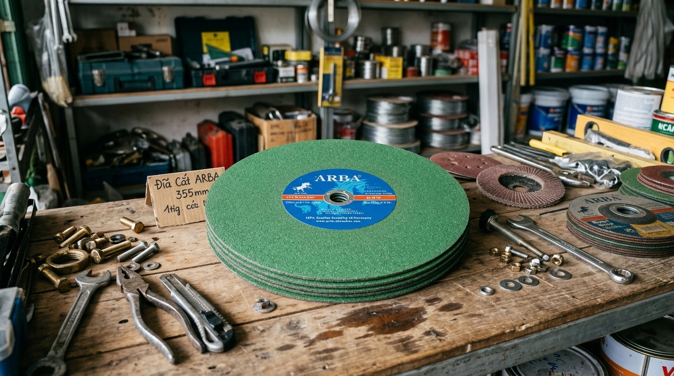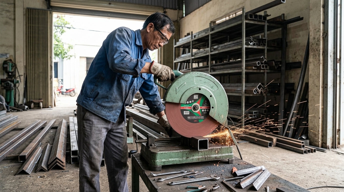 Đá cắt 350 Hải Dương 2 mặt xanh đỏ dùng cho máy cắt sắt bàn